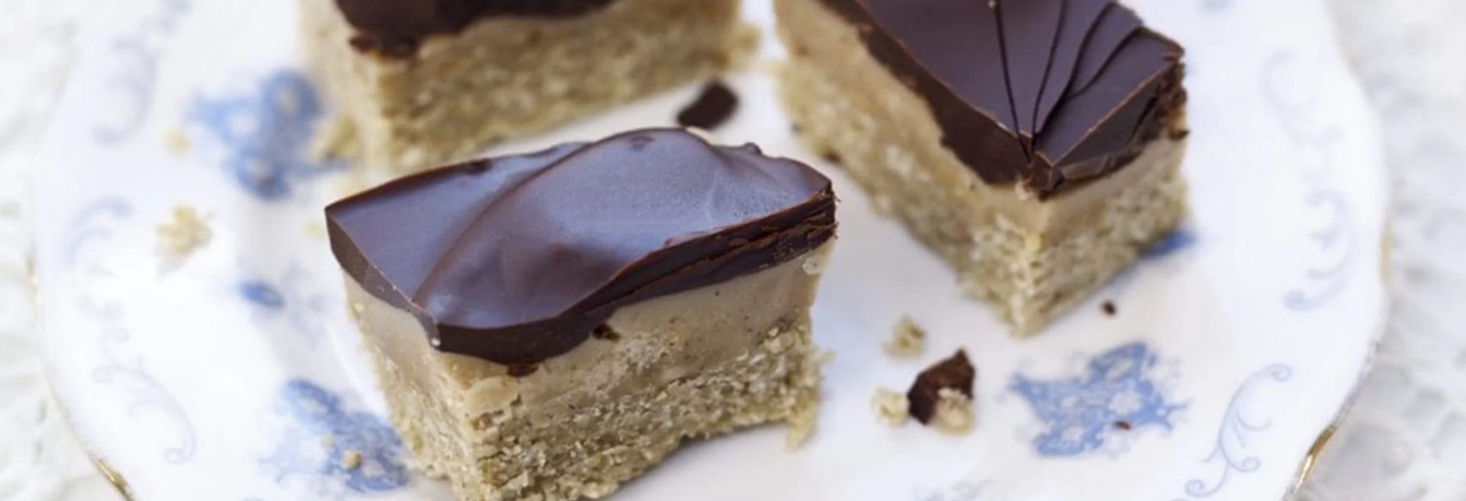 6. Carefully melt the chocolate in a bowl over a pan of barely simmering water. Once completely melted, remove the bowl from the pan, stir in the remaining coconut oil and allow to cool for a few minutes.