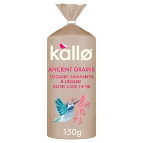 Kallo Ancient Grain Organic Corn Cake Thins topped with Amaranth and Linseed