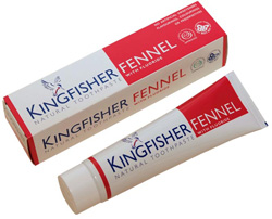 The original Kingfisher Natural Toothpaste, first made in 1988 by the UK brand leaders in Natural Toothpastes. This variety contains Fennel as a flavouring. This toothpaste contains fluoride and is suitable for those taking homeopathic treatment. <p>All Kingfisher Natural toothpastes are made without artificial sweeteners, flavourings, colourings or preservatives. The whole range is suitable for vegetarians and vegans as they contain no animal products and are not animal tested. <p>All Kingfisher toothpastes are recognised by the British Dental Health Foundation and are GM free. Each box and tube contains a full listing of ingredients, their source and their function.