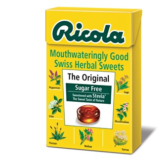The original Ricola sweets have a familiar, aromatic taste and are renowned for their soothing properties. Loved by millions, the original recipe has not changed since 1940 and is a closely guarded secret. Here, we simply made them sugar free. Without giving too much away, the special quality of original herb comes from the 13 herbs used: horehound, burnet, speedwell, marshmallow plant, lady's mantle, elder blossom, mallow, peppermint, sage, yarrow, cowslip, plantain and thyme with a hint of natural menthol.